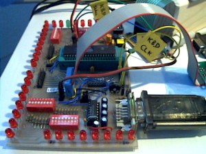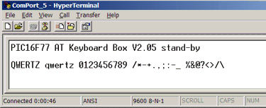 | Required Hardware: | AT keyboard, PS/2 connector, MAX232 level shifter, dedicated foil-keypad, LM393 comparator circuity for interrupt generation, HD44780 compatible dot matrix LCD (2x16, 2x20 or 2x40 characters) |