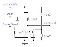 This circuit converts Futaba 2.75 V impulses to a standard impulse height for common CMOS components.
