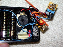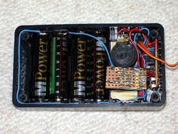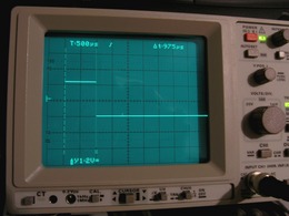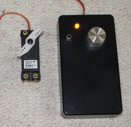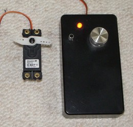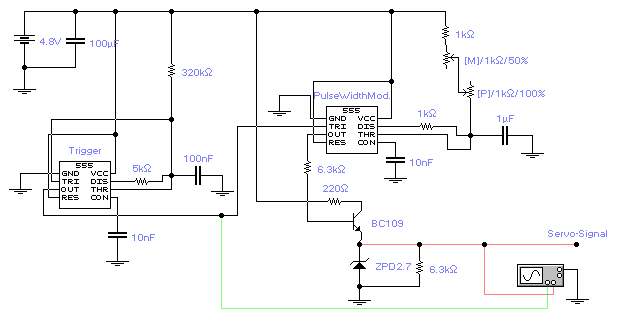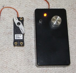 Note: Since the servo draws quite some instantaneous current (what might cause some power supply droops), ensure that there are sufficient capacitors to support the supply voltage (at least 100nF & 10uF). Otherwise the power supply droops slightly affect the timer circuitry: the pulse width may temporarily vary slightly, resulting in temporarily jerky servo movements.