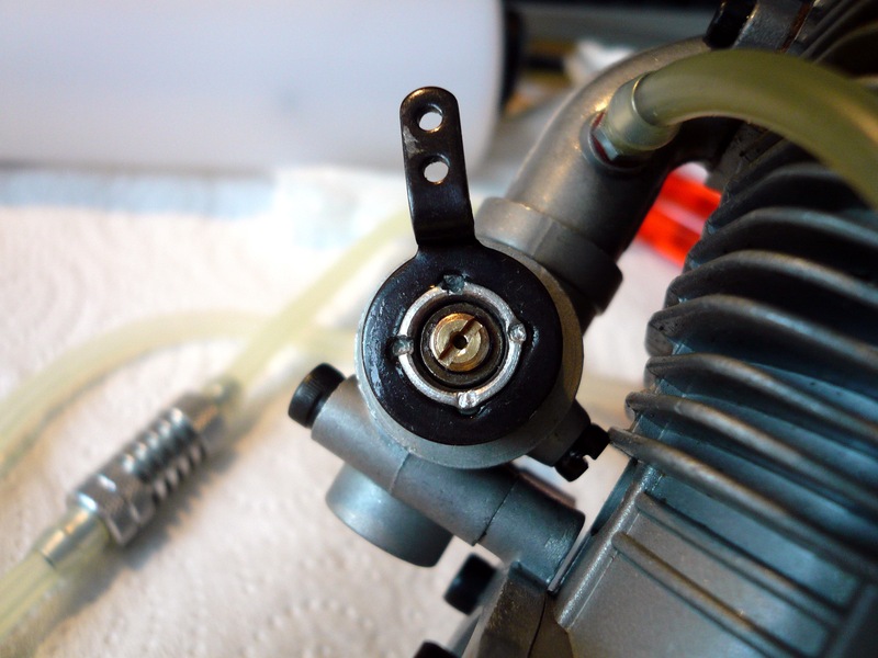 After some flights, the steel throttle arm of the Magnum XL-91RFS four-stroke engine came a little bit loose from the aluminium rotor. This issue was ultimately caused by engine vibrations, and as a consequence, had detrimental effects on a reliable and stable idle run. I had to re-tighten it using pressure and glue, and I also applied some thread lock compound to the low speed needle valve to prevent it from unwanted alterations. Basically, I consider this story as one of the subtle but important differences between a high-quality O.S. engine and an economically priced chinese derivative. Nevertheless, working around the aforementioned issues still lets you enjoyably perform R/C modeling with a cost-effective chinese engine. |