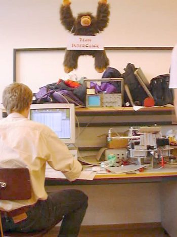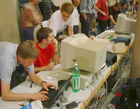 simulation), behind the two XOberon hackers; with red T-Shirt