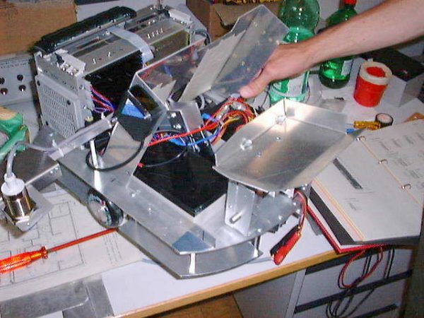 Behind the cantilever arm is the embedded PowerPC rack with the