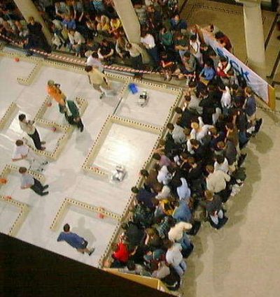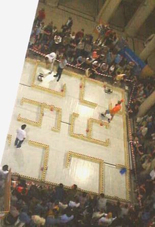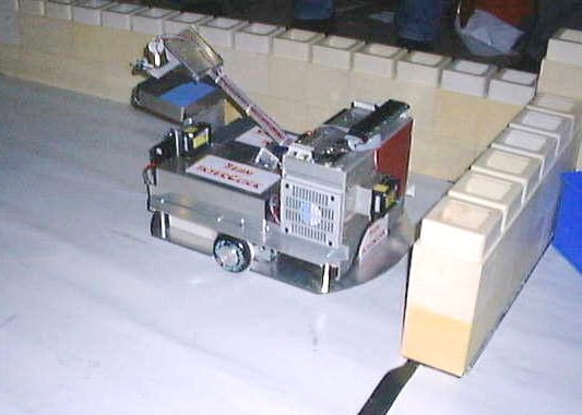 We made 3rd place, not that good we expected, but there is to say, that each of the three top classified teams could have been the winner. From the technical perspective, all of them had solved the problems of picking up the letters and navigating through the labyrinth excellent. It was finally only a lucky question of selecting the right strategy against the opponent, so that the opposing robot was driving just behind the other robot getting only empty letter boxes...